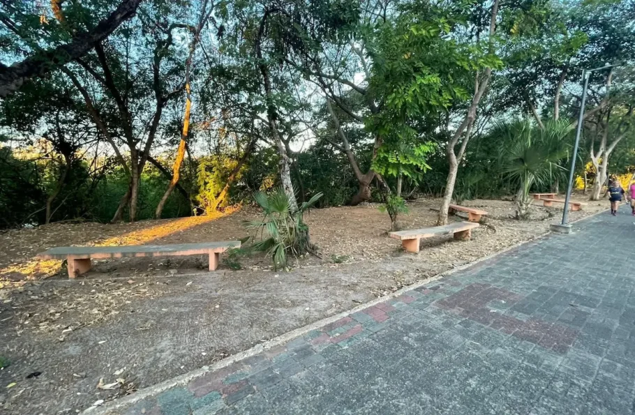 Área com bancos no Parque Poti II, à margem do Rio Poti. Foto: Kaio Pinto