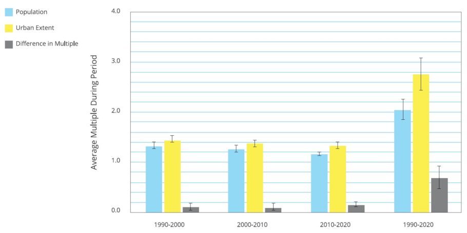 Um exemplo brasileiro citado no estudo ilustra o extremo desse fenômeno: Palmas (TO). No período analisado, a cidade expandiu sua mancha urbana por um fator de 13,7 vezes. Enquanto a população crescia, a cidade se espalhou quase 14 vezes em território. É como construir 13 novas cidades vazias ao redor da original. Isso não é crescimento, é espraiamento descontrolado.